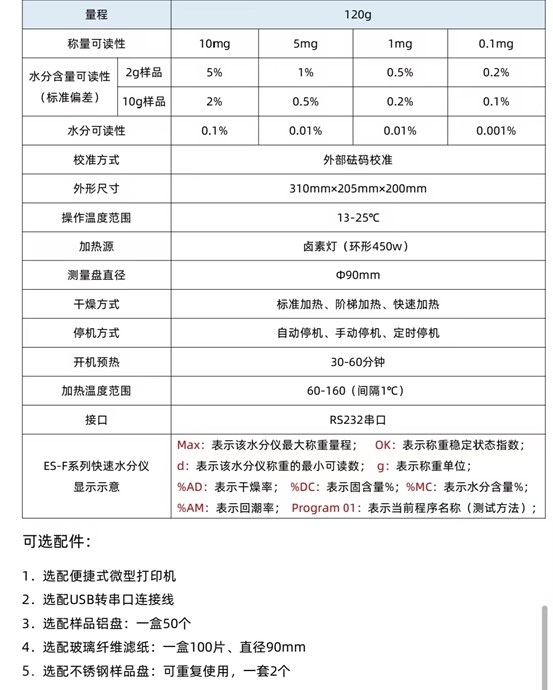 ★快速分析、先进的卤素灯技术是确保快速加热和精确温度控制的关键,最终测量结果在最短时间内得出