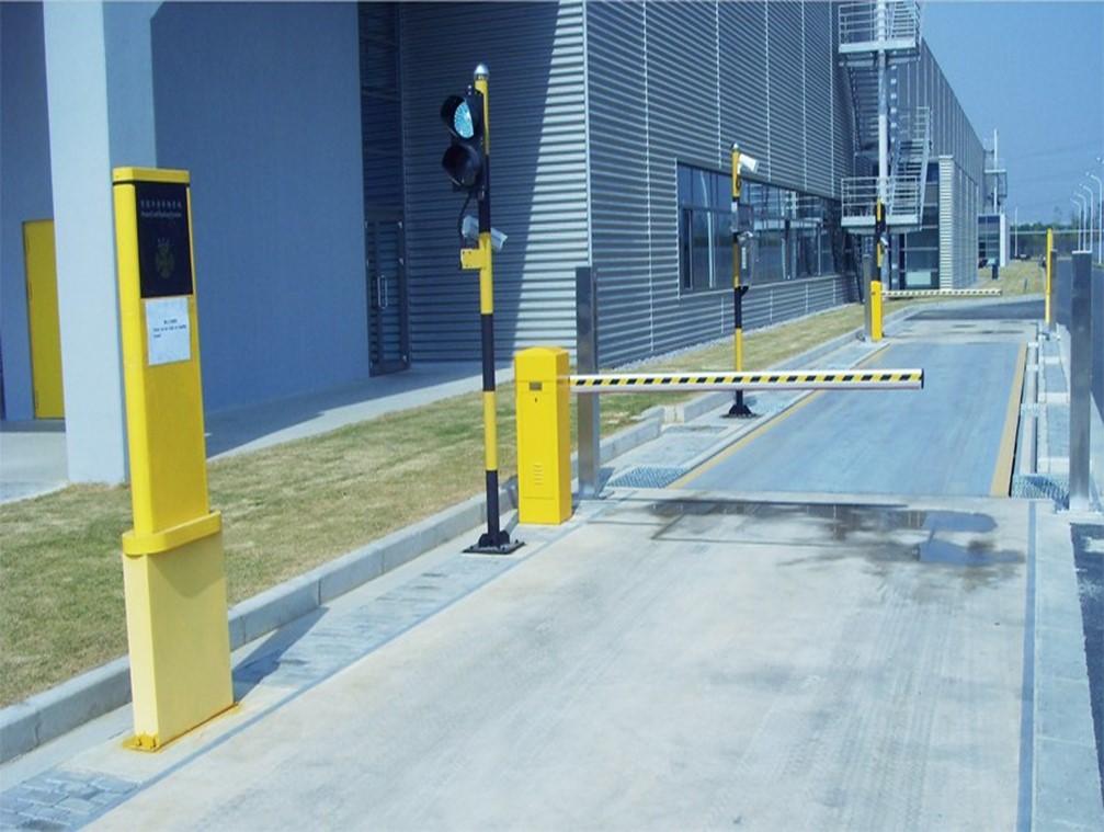 (b) 两台汽车衡及进出口上分别安装挡车设备:自动道闸、挡车栏杆、防砸线圈、车辆检测器、智能切换控制单元及智能控制器。